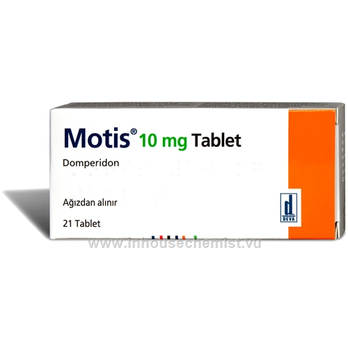 Motis tablets 10mg contain domperidone, a dopamine antagonist that is used as antiemetic (prevents nausea and vomiting) to treat nausea and vomiting caused by a variety of conditions, including, gastrointestinal disorders or medication such as anti-cancer drugs. Motis works by blocking the action of the chemical messenger dopamine in the brain and in the upper intestine, and this prevents vomiting and restores the natural rhythm of the digestive system. The action of Motis helps relieve symptoms of digestive problems including bloating, fullness, heartburn, regurgitation of bile, abdominal pain and flatulence, which can happen when the digestive system is out of rhythm and cause discomfort.