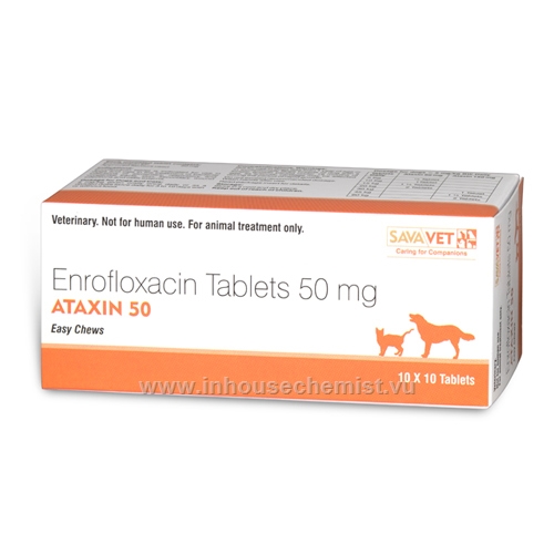 Ataxin tablets 50mg contain the active ingredient enrofloxacin a fluoroquinolone antibiotic used to treat most common bacterial infections in dogs and cats.
