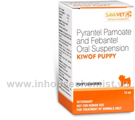 Kiwof Puppy Oral Suspension contains two active ingredients pyrantel pamoate 14.4mg/mL and febantel 15mg/mL that are used in combination as a multi spectrum de-wormer for puppies and young dogs.