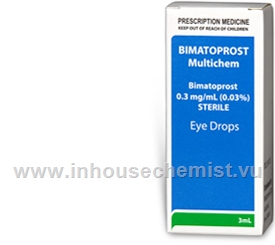 Bimatoprost Multichem eye drops contain the active ingredient bimatoprost 0.3mg/ml (0.03%), a synthetic analogue of prostamide used to lower intraocular pressure (IOP) in glaucoma. They also contain sodium phosphate dibasic, sodium chloride, citric acid monohydrate, purified water and the preservative benzalkonium chloride; sodium hydroxide and hydrochloric acid are added to adjust PH.